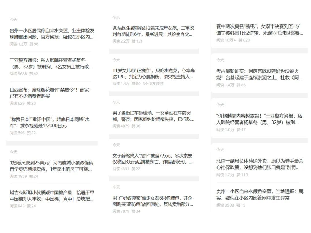 二是5W等核心要素大都被囊括其中。用户不需要点开新闻,就能大致了解新闻内容。说白了就是“一句话新闻”。